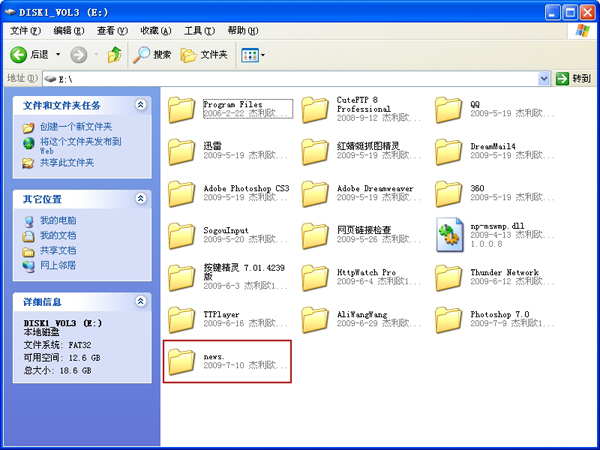 我想在E盘建立一个 news 的文件夹,正常建立方法大家都知道,现在我介绍另一种方法,可以很好的防止外人打开你的文件夹。
