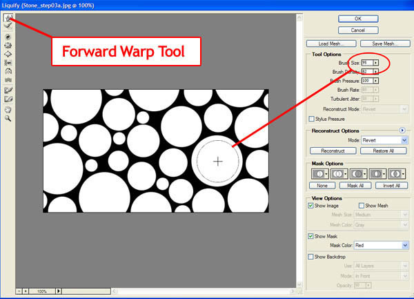 4、在主菜单中,点击滤镜>液化。再弹出的窗口中,选择左边工具栏中的向前变形工具。你需要做的是调节右边的笔刷大小选项。我这里选择的是95。