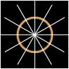 | 4、上加一层,画一个像素高的水平线条,使其位置在圆环的中心线上,再画一个像素宽的竖直线条,使其位置在圆环的中心线上,十字线条的中心点也该是圆环的中心点, 结果如下图: |