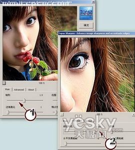 在安装了TOPAZ外挂滤镜之后,我们打开一张图片,使用菜单“滤镜→Topaz Vivacity→Topaz Sharpen”,在Main选项卡中,设置锐利值为“1.9”。