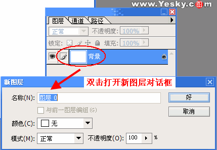 如果实在不愿意使用Photoshop强加的受限制背景图层,我们也可以将它转换成普通图层让它不再受到限制。具体方法:在图层调板中双击背景图层,打开新图层对话框(图4),然后根据需要设置图层选项,点击“确定”按钮后再看看图层面板上的背景图层已经转换成普通图层了。