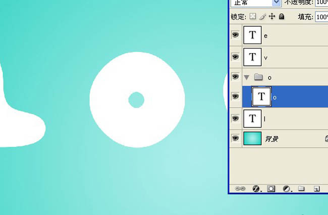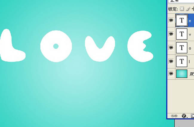 2、选择文字工具(t)然后分别在画布上打上LOVE 4个字母(每个字母一个图层)。