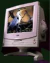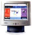 显示器,它的任务是将大总管的所思所想展示给大家看,因此是个主要的输出设备,它由一根视频电缆与主机的显示卡相连。以前,大家多用14英寸(屏幕对角线的长度,1英寸=2.56cm)的球面显示器,但现在15英寸平面直角的显示器已逐渐流行起来了,这种显示器的屏幕几乎在一个平面上,不象以前的显示器那样中间凸起,画面效果有了很大的提高。