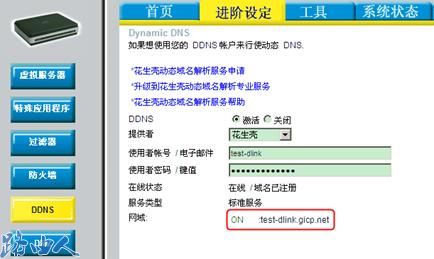 一、友讯路由器进阶设定→DDNS,填入所申请到的花生壳的帐号和密码,点击执行
