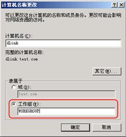 (1)不在WORKGROUP工作组的计算机,可点击更改按钮进行更改。