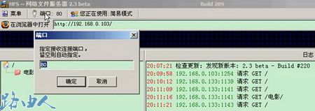 (3)除了使用默认的80端口以外,还可以对端口进行设置,这样在进行访问文件服务器的时候在IP地址后还需加上相对应的端口号。