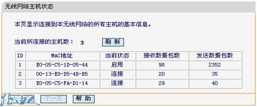 二、主机状态会显示出当前连接到您路由器的主机MAC地址,由此您可以判断是否有非法用户接入