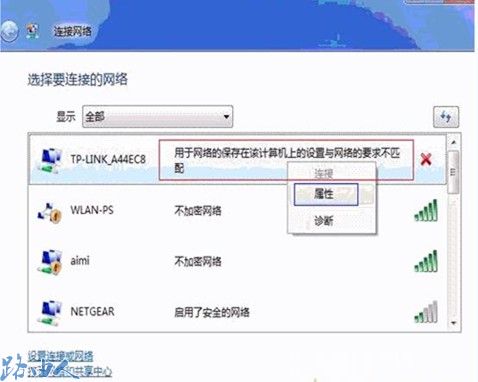 二、Vista系统下无线连接提示用于网络的保存在该计算机上的设置与网络的要求不匹配。如图示