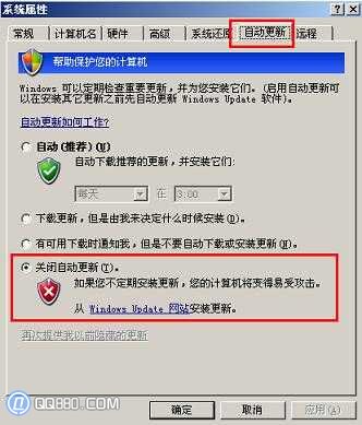 如何关闭自动更新、自动更新怎么关闭、怎么关闭自动更新、关闭自动更新提示; 如今各种安全软件都已经集成了漏洞修复功能,在微软发布官方补丁时,这些安全软件都能够自动下载并且更新这些补丁,而Windows自带的自动更新程序虽然能够下载补丁,但无法进行后台安装,需要手工安装补丁过于麻烦,所以自动更新程序显得有点多余,本文将介绍如何关闭自动更新,避免因自动更新提示对用于造成影响; 如何关闭自动更新,自动更新怎么关闭(从易到难,彻底关闭): 第一步:鼠标右键点击“我的电脑”——>选择“属性”——>将“系统属性”切换到“自动更新”选项卡中——>点击下方的“关闭自动更新(T)”;或者点击“控制面板”——>选择“安全中心”——>在“Windows安全中心”下方点击“自动更新”——>点击下方的“关闭自动更新 (T)”;假如选项为灰色不可选,请看第二步; ![]() |