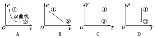解析:由题意知,从①到②,温度不变,体积增大,压强减小,所以只有AD正确。AD。