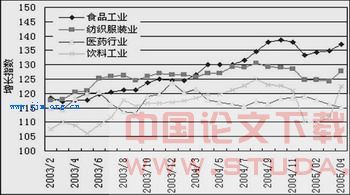 食品等主要消费品价格近期的上涨态势在相当程度上影响了居民的购买力。纺织服装等行业也受到出口增速放慢的影响。但从历史经验看,作为基本的生活消费品,这类行业增长态势一般不会形成大的波动,目前的下降态势幅度不大,也不会延续太长时间。