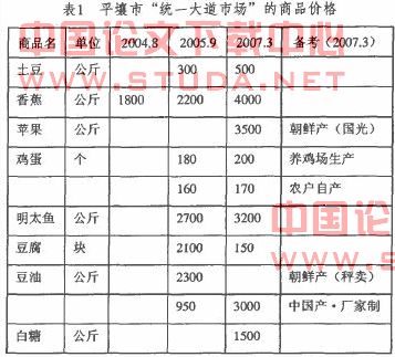 从表1可以看出,朝鲜自由市场的商品价格虽然不是爆发性增长,但物价增速依然较快。根据笔者对朝鲜经济学者的采访调查,2002年7月推出的《经济管理改善措施》中规定的生活费(工资)标准,至今也没有什么变化。靠工资去自由市场购物根本无法生存。截至2008年9月,估计平壤市统一大道自由市场大约有5000),.左右的顾客,如果这些人不是拥有2007年7月出台措施规定的工资标准以上的收入,无法解释统一大道自由市场的人流和商品增加的现状。