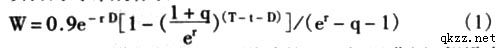 4. 用SW表示单位建筑面积的商业地产在出租率为90%的条件下,在土地使用年限内所带来的净收益现值,相当于推迟期权到期日的商业地产单位建筑面积的销售价格,其中S表示推迟期权到期日的单位建筑面积的商业地产年净租金水平。假设租赁价格以一固定百分比q逐年递增,其中q表示商业地产年净租金的增长率,t表示推迟期权的时间,T表示项目的寿命期,则: