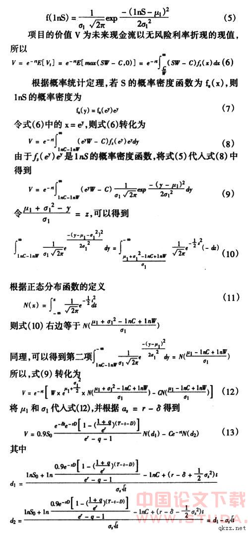 2.在期权有效期内,除价格变动而形成资本损益外,还包括因为土地闲置所产生的机会成本,即存在负的红利分配。假定红利分配δ是恒定的,等于土地闲置的机会成本。