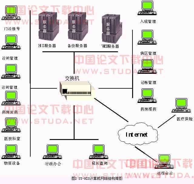 由于SY?/FONT>HIS是一个较大的信息系统,覆盖医院的各诊疗环节和医院管理的各主要方面。对于医院内部软件的开发,我们采用传统的客户机/服务器(Client/Server)方式和先进的浏览器/服务器(Browse/Server)方式相结合的方法进行,主要包括下面几个子系统: