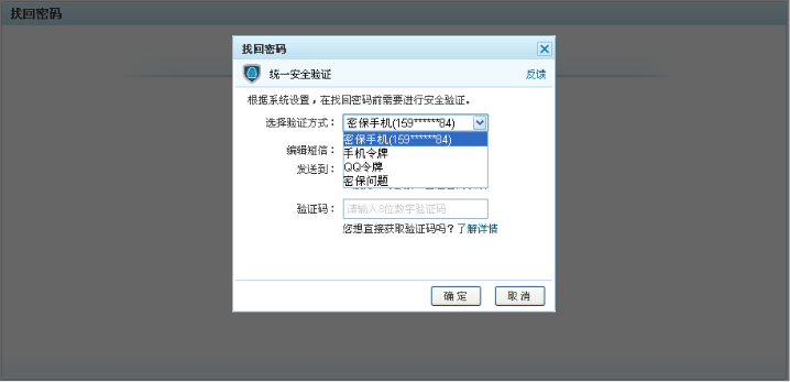 通过密保手机发送短信找回密码