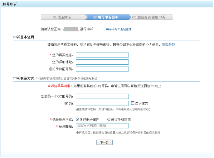 通过帐号申诉找回密码