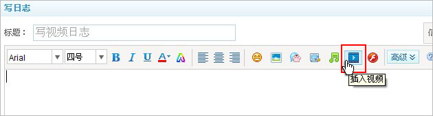 在QQ空间点击日志,进入写日志状态,找到插入视频的图标。