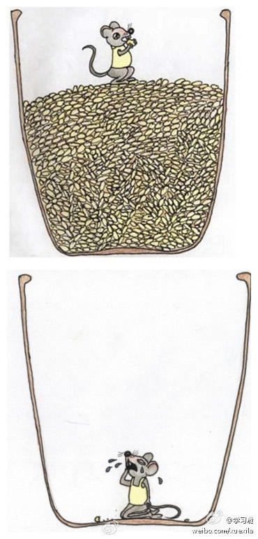 一只老鼠掉进了一个半满米缸,这意外使老鼠喜出望外,确定没有危险后,它一顿猛吃,吃完便睡。 老鼠就这...
